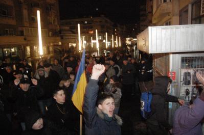 Peste 100 de persoane au înfruntat ploaia pentru a manifesta şi vineri seară, în centrul Craiovei, cerând demisia guvernului şi a preşedintelui Traian Băsescu. Fluturând steaguri tricolore şi scandând lozinci precum „Demisia!“, „Jos guvernul!“, „România, trezeşte-te!“ şi „Fără violenţă!“, protestatarii au mărşăluit paşnic pe strada Unirii, sub supravegherea de la distanţă a jandarmilor şi a poliţiştilor, întorcându-se apoi în Piaţa Prefecturii. Sufletul protestului l-a reprezentat un grup format din tineri care, deşi mulţi nu ajunseseră la vârsta dreptului de vot, erau convinşi că schimbarea executivului şi un alt şef de stat ar însemna mai bine pentru România. Alături de aceştia, un vârstnic se adresa trecătorilor, citindu-le de pe pancarta pe care o ţinea în mână: „Jos ciuma portocalie!“.