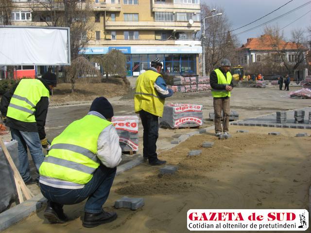 Vremea s-a îmbunătăţit, aşa că angajaţii Regiei Autonome de Administrare a Domeniului Public şi Fondului Locativ (RAADPFL) Craiova s-au pus serios pe treabă. Unii dintre ei se ocupă de repararea temporară a gropilor din carosabil, alţii pavează străzi şi trotuare din zonele mărginaşe ale oraşului, în timp ce alte câteva echipe pun pavele pe trotuarele din zona centrală.