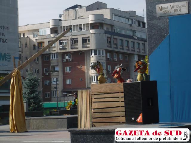 În lipsa unui teatru propriu, actorii păpuşari joacă pe unde pot – în şcoli, grădiniţe, cămine culturale ori chiar lângă… soclul statuii lui Mihai Viteazul