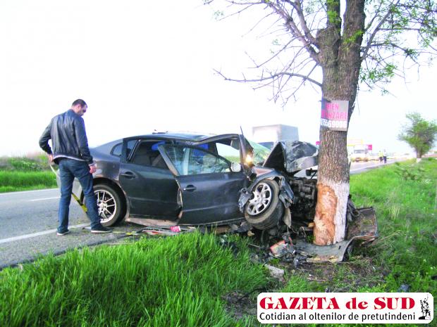 Patru tineri din judeţul Olt au fost răniţi vineri seară, după ce maşina cu care se deplasau pe DN 65, un VW Passat înmatriculat în Spania, s-a izbit de un copac de pe marginea drumului. Potrivit poliţiştilor doljeni, un tânăr de 20 de ani, din Balş, în timp ce conducea un VW Passat dinspre Craiova către Balş, la km 10+700 a pierdut controlul direcţiei şi s-a izbit frontal de un copac de pe marginea drumului. În urma impactului violent, şoferul autoturismului şi cei trei pasageri au fost răniţi şi transportaţi la Spitalul de Urgenţă Craiova cu mai multe ambulanţe. Victimele nu au suferit leziuni grave, care să le pună viaţa în pericol. Poliţiştii de la Rutieră au stabilit, după primele cercetări, că şoferul a pierdut controlul direcţiei din cauza vitezei excesive cu care circula.