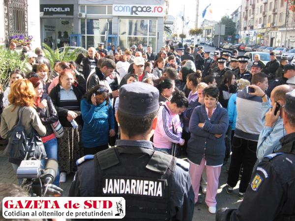 Ieri-dimineaţă, exact în momentul în care prefectul de Dolj, Elena Costea, ataca în instanţă dispoziţiile de demolare semnate de primarul Olguţa Vasilescu, chioşcarii vizaţi de aceste demolări au organizat un protest anti-USL. Circa 80 de patroni şi angajaţi ai acestor chioşcuri aflate în ilegalitate s-au adunat în faţa Primăriei Craiova şi au scandat „Jos Olguţa!“, „Jos USL-ul!“, „Ponta, salvează-ne!“ şi „Vine decembrie, scăpăm de USL!“. Zeci de poliţişti şi jandarmi au vegheat ca protestatarii să nu ia cu asalt primăria. În jurul orei 12.00, protestatarii au plecat acasă, după ce viceprimarul Cristina Calangiu le-a transmis – prin intermediul unei delegaţii de patru persoane – că primăria va lua o decizie în privinţa chioşcurilor în două-trei ore. Iar decizia a venit, dar de la Prefectura Dolj…