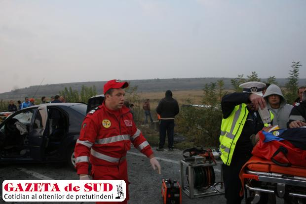La locul accidentului au fost trimise mai multe ambulanţe, dintre care una de la SMURD, dar şi un echipaj de descarcerare, care au preluat răniţii şi i-au transportat la Spitalul de Urgenţă Craiova. Potrivit medicilor craioveni, unul dintre cei răniţi – Emilian Vieru, de 52 de ani, pasager în Dacia Logan, a fost adus de ambulanţa SMURD în stare foarte gravă şi nu a mai putut fi resuscitat după ce a intrat în stop cardio-respirator.