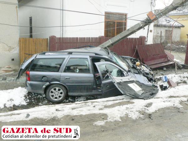 Poliţiştii din cadrul IPJ Dolj au comunicat că, luni, în jurul orei 14.00, Daniel Buzatu, de 32 de ani, din Poiana Mare, în timp ce conducea un Opel Vectra înmatriculat în Bulgaria pe DN 55 A, a pierdut controlul direcţiei şi a lovit un cap de pod, apoi a fost proiectat în gardul unui imobil, apoi în alt cap de pod şi s-a oprit într-un stâlp de beton al reţelei de energie electrică. În urma impactului violent, şoferul a fost rănit grav şi transportat la Spitalul din Calafat, fiind transferat la Spitalul de Urgenţă Craiova. Medicii au stabilit că tânărul şofer a suferit un traumatism cranio-cerebral acut şi o fractură de bazin. Pasagerul din maşina condusă de Buzatu, Nicuşor Dinu, de 21 de ani, din aceeaşi localitate, a suferit leziuni mai uşoare şi nu a rămas internat.