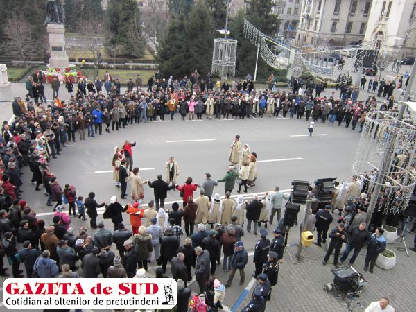 Festivităţile au început încă de la ora 10.00 cu un ceremonial militar-religios şi au continuat cu defilarea a două detaşamente militare ale „Scorpionilor Roşii” şi a unui detaşament de subofiţeri şi ofiţeri ai Grupării Mobile de Jandarmi Craiova. Fanfara militară a Garnizoanei Craiova a intonat apoi „Hora Unirii”, iar oficialităţile locale prezente la această manifestare s-au prins într-o horă alături de cetăţenii care asistau la eveniment.