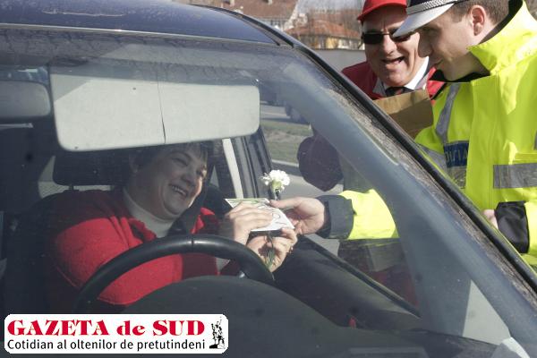 Poliţiştii Serviciului Rutier Dolj şi cei ai Biroului Rutier Craiova, în parteneriat cu inspectorii Agenţiei Generali Asigurări Craiova, au oferit vineri, şoferiţelor, mărţişoare, flori şi felicitări.