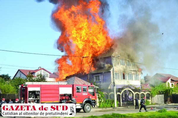 Un imobil cu două etaje şi mansardă din lemn, situat în apropiere de Frigorifer, pe strada Gârleşti din Craiova, a fost distrus aproape în întregime vineri după-amiază, în urma unui incendiu violent.