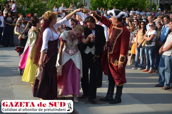 Zeci de craioveni şi-au dat întâlnire ieri la Carnavalul dansului şi costumelor, în cadrul ultimei seri a Zilelor Mihai Viteazul. Boieri români şi nobili turci, domniţe, ţigăncuşe de la curtea Banului, dregători, fraţii Buzeşti şi însuşi Mihai Viteazul, toţi întruchipaţi de elevi ai unor licee, colegii şi şcoli gimnaziale, şi-au etalat costumele. „Am avut puţin timp la dispoziţie să încropim un costum. Am împrumutat de la cunoscuţi. Ne-au ajutat şi profesorii, şi directorul“, au precizat câţiva dintre elevii Colegiului Naţional „Carol I“. Nu au lipsit din dotarea boierilor şi vitejilor lui Mihai armele autentice. „Avem arme din colecţii particulare, săbii de inspiraţie otomană specifice epocii, bici, topor românesc de luptă“, au ţinut să precizeze cei trei fraţi Buzeşti de la colegiul cu acelaşi nume.