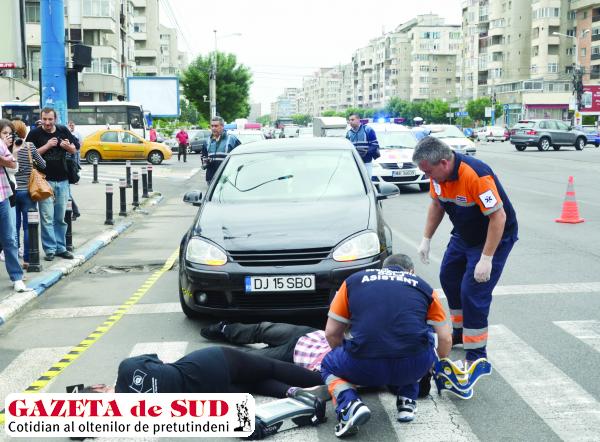 Craiovenii care au trecut ieri, în jurul prânzului, pe strada Calea Bucureşti, în zona blocului S200, au putut fi martorii unui accident de circulaţie produs pe trecea de pietoni, în urma căruia doi tineri care traversau strada au fost loviţi în plin de un autoturism VW Golf care nu le-a acordat prioritate. Din fericire, accidentul nu a fost real, ci o simulare făcută de poliţiştii IPJ Dolj în parteneriat cu Sociatatea Studenților Mediciniști din Craiova şi Serviciul de Ambulanță Judeţean Dolj, în cadrul proiectului naţional „Road Safety“ (Siguranţa Rutieră – n.r.).