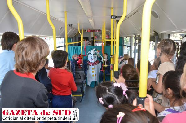 Câţiva copii de clasa întâi şi a treia de la Liceul „Matei Basarab” din Craiova au plecat astăzi la plimbare cu „Autobuzul cu păpuşi”, tovarăşi de drum fiindu-le personaje din lumea fabulelor lui La Fontaine, Grigore Alexandrescu şi Alecu Donici. Personajele vor fi însufleţite de actori de la Teatrul „Colibri”, instituţia care a organizat spectacolul interactiv pentru copii „Autobuzul cu păpuşi”, în cadrul celei de-a 17-a ediţii a Zilelor Craiovei.