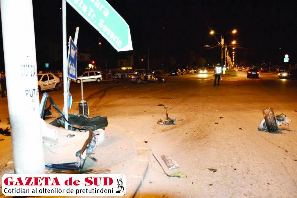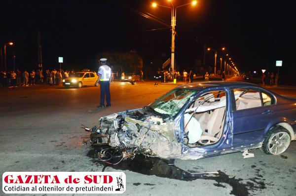 Poliţiştii din cadrul IPJ Dolj au precizat că, luni noapte, în jurul orei 23.00, Alexandru Buzdugan, de 21 de ani, din Craiova, care conducea un BMW înmatriculat în Marea Britanie, în apropiere de intersecţia cu strada Râului a pierdut controlul direcţiei, a lovit bordura din partea dreaptă a bulevardului, apoi a acroşat un Peugeot condus în aceeaşi direcţie de Roberta Bîrdău, de 18 ani, din Craiova.