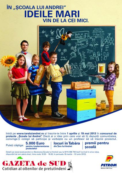 Pentru inițiatorii celor 152 de echipe înscrise în competiția „Școala lui Andrei“, emoțiile au luat sfârșit. În perioada 5 aprilie – 19 mai, elevii de școală generală au fost provocați să găsească soluții antreprenoriale pentru schimbarea în bine a comunității din care fac parte. Prin ideile înscrise în competiție au demonstrat că pot rezolva probleme de „oameni mari“.
