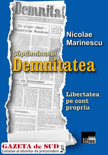 Sâmbătă, 29 iunie, la ora 11.00, la Terasa Big Ben din Craiova, str. Mircea Vodă, nr. 1, are loc lansarea cărţii „Săptămânalul DEMNITATEA. Libertatea pe cont propriu“, de profesor Nicolae Marinescu. Volumul, care îşi propune să evoce contextul începuturilor presei libere craiovene în perioada decembrie 1989 -1990, a apărut zilele trecute la Editura Aius din Craiova şi este a şasea carte a omului de cultură Nucu Marinescu. Criticul Constantin M.Popa a scris despre această apariţie: „Cartea de faţă se înscrie în categoria lucrărilor atât de necesare configurării a ceea ce Ruxandra Cesereanu definea drept memorie terapeutică. Este o scriere despre voinţa de înţelegere, menită să pătrundă sensul existenţei într-un timp al dezastrelor ce a marcat dureros destine aflate în pragul aneantizării. În ipostaza de participant direct la evenimentele ce au urmat lui decembrie 1989, Nicolae Marinescu trăieşte «iluzia cortinei», descrifează «complexul sărăciei», exultă în momentul «regăsirii luminii» şi al «timpului speranţei»“.