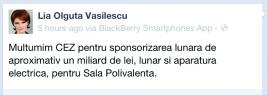 CEZ îşi bate joc de craioveni şi face orgă de lumini în casele oamenilor, oprindu-le curentul când le e lumea mai dragă, dar sponsorizează cu 100.000 de lei lunar Sala Polivalentă din Craiova. Informaţia a fost dezvăluită chiar de primarul municipiului, Olguţa Vasilescu, care laudă compania pe pagina personală de Facebook, dar nu suflă o vorbă despre problemele pe care le au craiovenii cu CEZ.