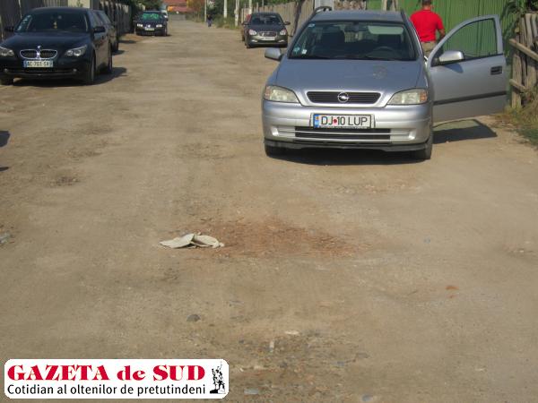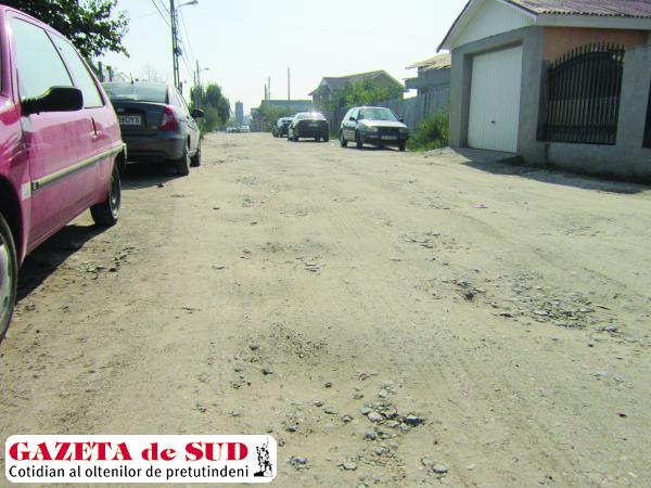 Un cititor al Gazetei de Sud ne-a semnalat faptul că, pe strada sa, autorităţile nici măcar nu s-au obosit să niveleze drumul, dar să îl asfalteze. Este „un drum valuri-valuri, mai ceva ca după război şi demn de oricare alt sat, nu de un oraş care doreşte să devină capitală culturală. Pe acolo nu s-a mai trecut nici măcar cu buldozerul de peste cinci ani, nu cere nimeni asfalt şi trotuare, dar nici măcar o nivelare care s-ar face în câteva ore? Pe o stradă care nu se află la mai mult de 3,5 km de Primăria Craiova, unde doamna primar Olguţa nu face decât umbră pe acolo şi nimic altceva“, ne-a scris un locuitor al acestei străzi pe adresa [email protected].