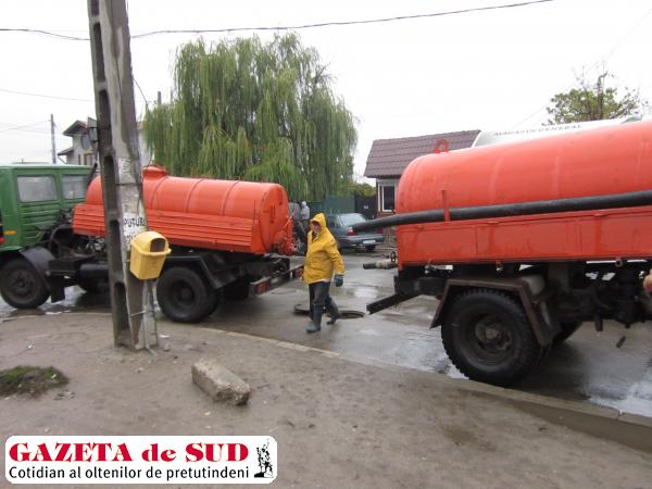 Compania de Apă „Oltenia“ a intervenit cu vidanjele, în cursul zilei de ieri, pe mai multe străzi şi alei din localitate. Cele mai afectate au fost cartierele Brestei (Aleea IV, Aleea VII şi Aleea Fermierului) şi Romaneşti (Aleea I şi II Odesa, străzile Bechetului, Homer, Petrila, Ecoului şi Bihorului).