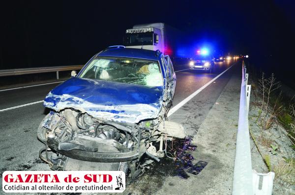 Accidentul rutier a fost înregitrat vineri seară, în jurul orei 18.00, pe DN 6, între localităţile Coşoveni şi Leu.