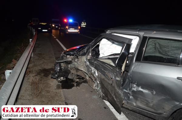 Reprezentanţii IPJ Dolj au precizat că, din primele cercetări ale poliţiştilor de la Rutieră, s-a stabilit că Florica Radu, de 39 de ani, din Craiova, în timp ce conducea un VW Passat către Caracal, într-o curbă la dreapta, a pierdut controlul direcției, a intrat pe contrasens și a lovit un Suzuki Swift, condus regulamentar din sens opus de Gimi Popescu, de 27 de ani, din aceeași localitate. În urma impactului, ambele mașini au fost proiectate în parapetul de pe marginea drumului, iar tânărul de 27 de ani a fost rănit și transportat la Spitalul de Urgență din Craiova, unde a primit primele îngrijiri medicale. În fața polițiștilor de la Rutieră, şoferiţa a declarat că i s-a făcut rău la volan, acesta fiind motivul pentru care a pierdut controlul direcției.
