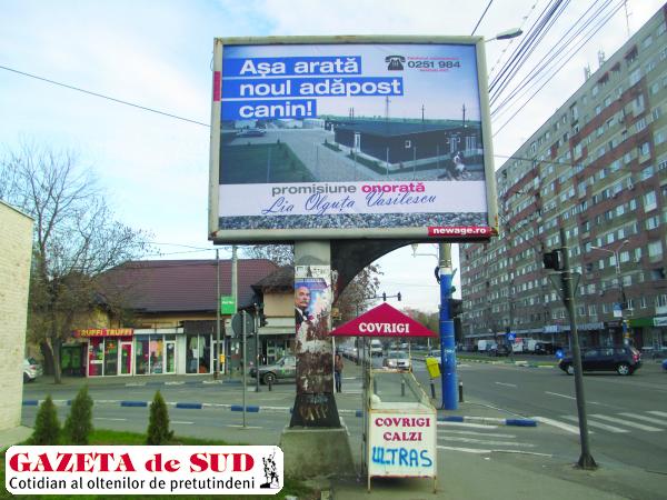 Persoana fizică Lia Olguţa Vasilescu împroaşcă locuitorii Craiovei cu noi mesaje publicitare. Reclamele sunt afişate pe panourile societăţii New Age Advertising Agency SRL, cele mai multe situate pe bulevardul Calea Bucureşti, cea mai circulată arteră a municipiului.