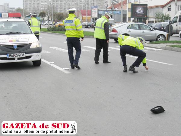 Potrivit reprezentanţilor IPJ Dolj, cetăţeanul italian Angelo Rizo, de 20 de ani, student în Craiova, a fost lovit şi accidentat de un BMW în timp ce traversa regulamentar bulevardul 1 Mai, pe trecerea de pietoni de la intersecţia cu strada Deva. Tânărul a fost transportat cu o ambulanţă la Spitalul de Urgenţă Craiova, unde medicii au stabilit că a suferit mai multe fracturi în urma accidentului rutier. Victima a rămas internată în Clinica de Terapie Intensivă a unităţii medicale. Şoferul BMW-ului a fugit de la locul accidentului imediat după ce a lovit pietonul, la locul impactului fiind găsită una dintre oglinzile maşinii.