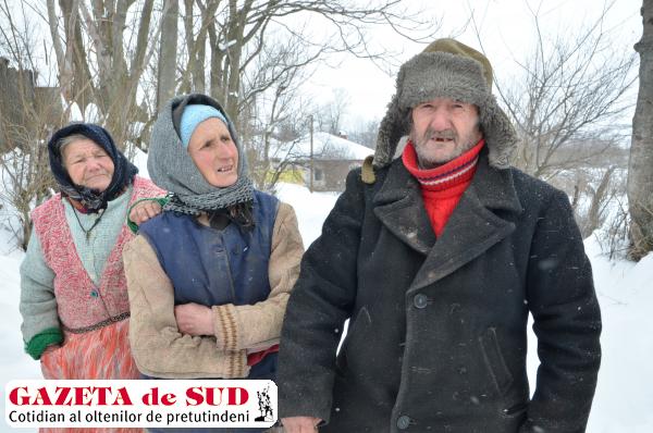 Mai la deal, pe strada principală, o bătrână curăţa zăpada din faţa porţii. „E foarte grea iarna asta! Am curăţat zăpada de dimineaţă la animale, în grădină, la locul unde am nutreţul să le dau de mâncare, la coceni, la paie“, a spus Ioana Marin, o femeie care se gospodăreşte aşa cum poate şi spune că are copiii plecaţi la oraş. Fără să lase lopata din mână, energica femeie a încheiat, concluzionând parcă mai mult pentru ea: „E grea, mamă, iarna, da’ ne descurcăm cum putem!“