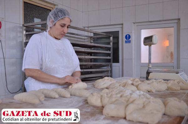 De la gerul de afară intrăm la căldură, în încăperea unde se produce pâinea în sistem industrializat. Într-o parte, femeile cântăresc fiecare pâine, apoi frământă aluatul şi îl răsucesc sub forma pituştilor, care sunt apoi băgate în cuptorul uriaş, încălzit cu lemne. Brutăria din comună hrăneşte mii de suflete zilnic şi nu doar din Robăneşti, ci şi din Craiova. O muncitoare nu s-a oprit din lucru nici măcar o clipă, cât a stat cu noi de vorbă. Ea face în jur de 500 de pâini pe zi. „Eu cred că oamenii nu mai fac pâine că sunt bătrâni şi nu mai pot să facă pâine sau nu mai au făină“, a spus Daniela Şerban, o tânără care lucrează la brutăria din comună.