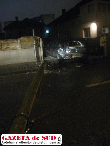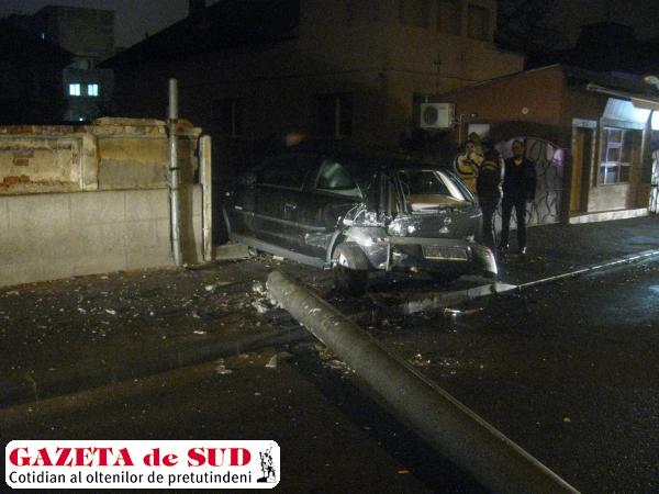 Un accident soldat doar cu pagube materiale s-a produs în această seară pe strada Constantin Brâncuşi din municipiul Craiova. Potrivit poliţiştilor doljeni, şoferul unui Mercedes cu numărul de înmatriculare DJ-33-FAN a pierdut controlul direcţiei, a lovit un autoturism Opel parcat, pe care l-a proiectat într-un gard, după care a lovit şi rupt un stâlp de beton al reţelei de energie electrică. Imediat după producerea accidentului, şoferul Mercedesului şi-a abandonat maşina avariată şi a plecat. Reprezentanţii Inspectoratului de Poliție al Judeţului Dolj au precizat că, potrivit legii, şoferul care a provocat accidentul are la dispoziţie 24 de ore pentru a se prezenta la sediul Biroului Rutier Craiova.
