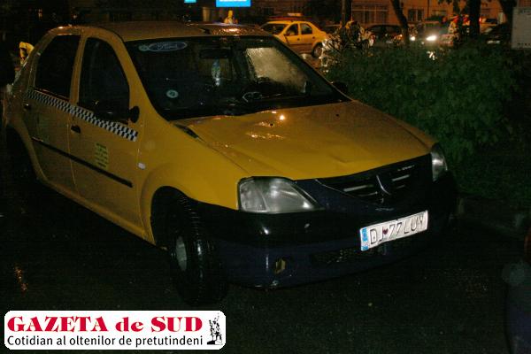 O femeie a fost accidentată în această seară de un taxi al cărui şofer a părăsit locul faptei. Accidentul s-a produs la intersecţia dintre strada Brazda lui Novac şi Bulevardul Dacia din Craiova. După primele cercetări efectuate la faţa locului de poliţiştii de la Rutieră s-a stabilit că victima nu traversa strada pe marcajul pietonal. Femeia accidentată, identificată drept Aurora Zamfirache, de 70 de ani, din Craiova, a fost transportată la Spitalul de Urgenţă din Craiova în stare gravă.