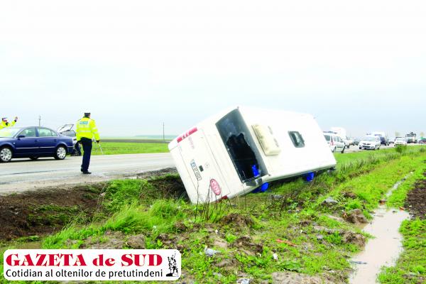 Poliţiştii din cadrul Inspectoratului de Poliţie al Judeţului (IPJ) Dolj au precizat că, joi, în jurul orei 11.30, Florin Ferezan, de 60 de ani, din București, în timp ce conducea un microbuz pe DN65 dinspre București către Craiova, la intrarea în comuna doljeană Pielești, din cauza neadaptării vitezei la condițiile de drum (carosabil umed), a pierdut controlul direcției și s-a răsturnat în şanţul de pe marginea şoselei.