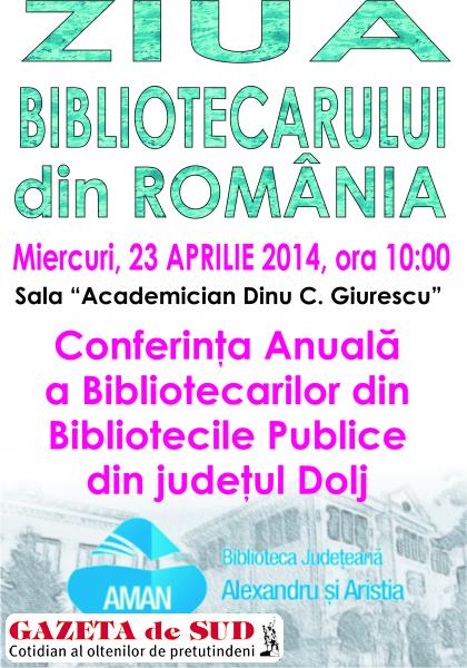 Potrivit unui comunicat al instituţiei, bibliotecarii au ocazia să prezinte în fața colegilor de breaslă realizările profesionale, dar şi să dezbată teme de interes legate de promovarea profesiei de bibliotecar. La conferinţă sunt aşteptaţi toţi bibliotecarii din cele 87 de biblioteci publice din judeţul Dolj şi se vor dezbate teme profesionale.