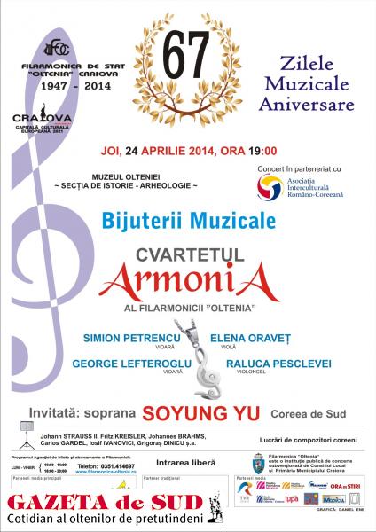 Concert susţinut de Cvartetul „Armonia” al Filarmonicii „Oltenia” în parteneriat cu Asociaţia Interculturală Româno-Coreeană