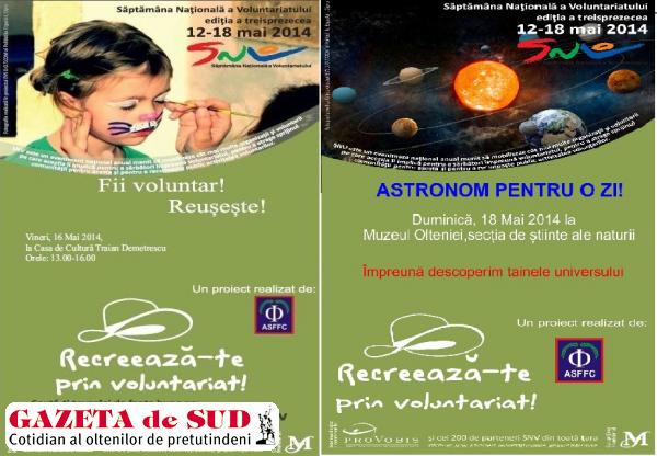 Prima activitate s-a numit „Fii voluntar! Reușește!” și a avut loc vineri, 16 mai, la Casa de Cultură Traian Demetrescu, la ora 13:00, și a fost realizată de către Asociația Studenților din Facultatea de Fizică din Craiova în parteneriat cu Universitatea din Craiova și Casa de Cultură Traian Demetrescu. Acţiunea și-a propus să promoveze importanţa dezvoltării pe plan personal și profesional prin intermediul activităţilor non-formale. În cadrul evenimentului au fost invitaţi: Daniel Botea blogger de succes, Cătălin Zamfir antreprenor, Cora Gabriel Sanda preșendintă la Pro Civica Oltenia și Dana Dobre, trainer AIESEC Craiova.