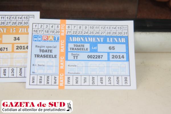 Consilierii locali au aprobat în şedinţa de consiliu de ieri o propunere a RAT Craiova prin care s-a consfinţit existenţa unui singur tip de abonament de călătorie cu autobuzele RAT: cel pe toate liniile. Preţul lui este de 65 de lei pe o lună, 34 de lei pentru 15 zile, 18 lei pentru o săptămână, şase lei pentru o zi şi 110 lei pe o lună cel nenominalizat, adică transmisibil. În raportul care însoţeşte proiectul RAT motivează desfiinţarea abonamentelor pe o lună, spunând că „traseele de autobuz din Craiova sunt foarte lungi şi o mare parte din călători nu folosesc tot traseul, ci, dimpotrivă, au nevoie de două sau mai multe trasee pentru a ajunge de la domiciliu la locul de muncă sau în alte locuri în care aceştia au nevoie“.