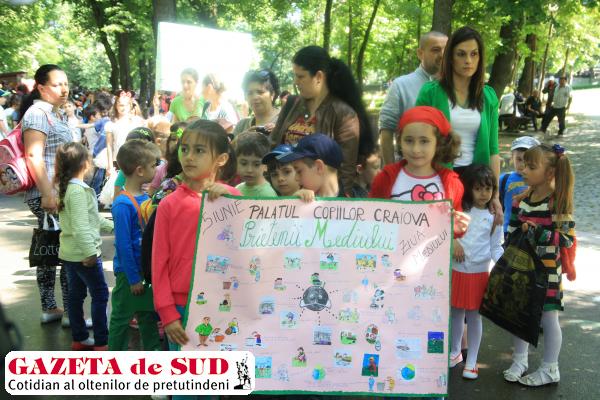 Concursuri şi dansuri tematice, expoziţii pe teme eco, parade ale costumelor eco realizate şi prezentate de elevi, spectacole sau desene pe asfalt au fost câteva dintre activităţile prin care copiii au demonstrat cât de importantă este protejarea mediului. La aceste evenimente au participat 12 şcoli şi grădiniţe din Dolj, majoritatea făcând parte din programul „Eco Şcoala“. „Ziua Mondială a Mediului se serbează de 42 de ani, iar Agenţia pentru Protecţia Mediului face de câţiva ani acţiuni cu tinerii pentru a-i educa în ceea ce priveşte protecţia mediului. Astăzi, am pornit cu un marş simbolic pe care l-am numit «Marşul ecologiştilor». Avem 12 şcoli şi grădiniţe participante, majoritatea făcând parte din programul Eco Şcoala“, a spus Octavian Popa, consilier în relaţii publice, comunicare la Agenţia pentru Protecţia Mediului Dolj.