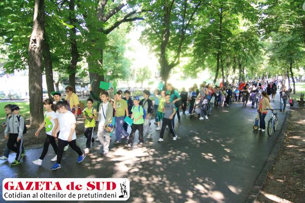 „Iubim mediul! Suntem eco! Fiți ca noi! Natura trebuie salvată! Avem nevoie de natură!“, sunt câteva dintre mesajele pe care cei mici le-au strigat în „Marşul ecologiştilor“, de la intrarea în parc până la Debarcader. Micii ecologişti au lăsat semne ale trecerii lor desenând mesaje eco pe aleile din parc. Concursurile de biciclete şi triciclete i-au distrat pe cei mici, relaxându-se în natură.