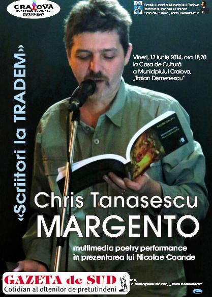 Chris Tănăsescu (Margento) este poet, performer, universitar și traducător, iar în 2009 a ajuns în finala festivalului european de Slam poetry de la Berlin. Margento este și numele trupei multimedia de performance poetry / action painting / jazz-rock cu care a câștigat un număr de premii naționale și internaționale, printre care Discul de Aur în România (2008) și a deschis prima ediție European Poetry Slam în Berlin, 2009.