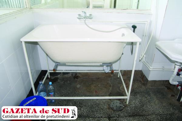 Din această cauză a apărut și infiltrația care deteriorează băile. În Clinica II Chirurgie, în unele băi pe care pacienții sunt nevoiți să le folosescă, tavanul se decojește, iar WC-ul este spart. Cada este veche și ea, iar în locul vopselei albe sunt acum numai pete negre.