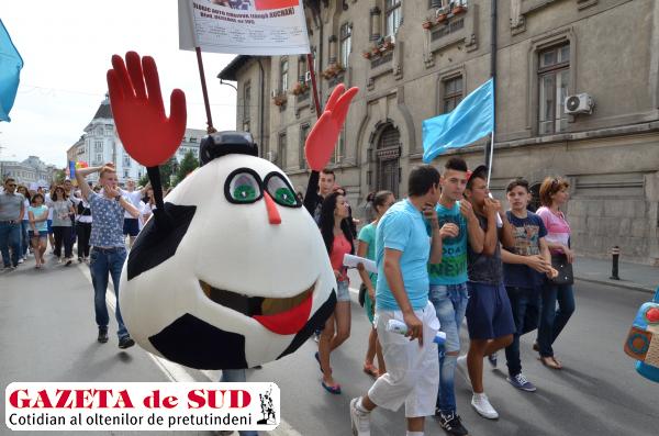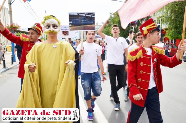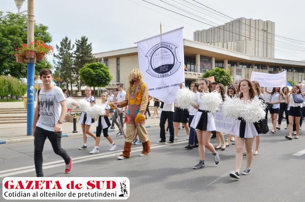 Costumați în personaje reprezentative pentru unitățile lor de învățământ, cum a fi Preda Buzescu pentru Colegiul Național „Frații Buzești“, sau însoțiți de mascote, cum ar fi leul pentru Colegiul Național „Carol I“, așa au pornit 400 de liceeni pe străzile Băniei, invitând trecătorii să li se alăture în parada care avea să culmineze cu un spectacol artistic, de câteva ore, în centrul orașului.