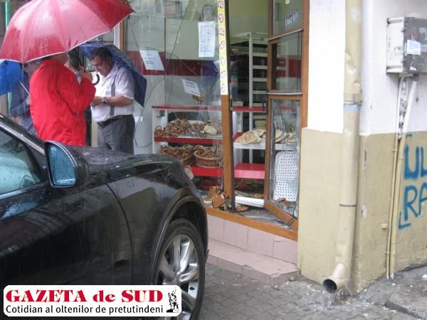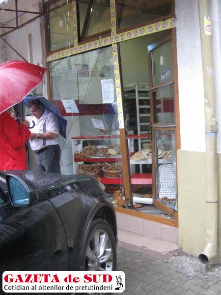 Şoferul unui autoturism marca Infinity a distrus vitrina unei covrigării de pe strada Unirii din municipiul Craiova, după ce în urmă cu puțin timp a intrat cu maşina în magazin. La faţa locului a ajuns un echipaj de la Biroul Rutier Craiova, care a stabilit, după primele verificări, că incidentul s-a produs din vina conducătorului auto. Acesta a declarat pentru Gazeta de Sud că avea maşina parcată pe trotuar, cu faţa spre covrigărie, iar când a pornit motorul a apăsat din greşeală pedala de acceleraţie, astfel că autoturismul a intrat în vitrina simigeriei. Incidentul nu s-a soldat cu victime, pentru că în acel moment nu era nici o persoană la coadă în faţa magazinului.