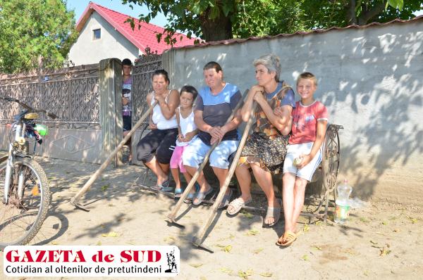 Pe o bancă stau trei femei, obosite și toropite de căldură. Se sprijină în sapele cu care au tăiat dis-de-dimineață buruienile. Le întrebăm de vița-de-vie. „S-au mănit viile de la căldură, de la stropii de ploaie, că, dacă dau vreo câțiva stropi de ploaie e mană aia. Și strugurii s-au mănit. Se va face mai puțin vin anu’ ăsta!“, a spus Veta Bucătură, cu o voce răgușită și puțin cam sâsâită, din cauza lipsei câtorva dinți. Femeia se plânge că și roșiile au fost distruse de mană. „Și roșiile sunt la fel ca viile, sunt mănite. Nu mai facem bulion ca în alți ani. Și sunt și scumpe ca să cumpărăm. E doi lei kilogramul…“.