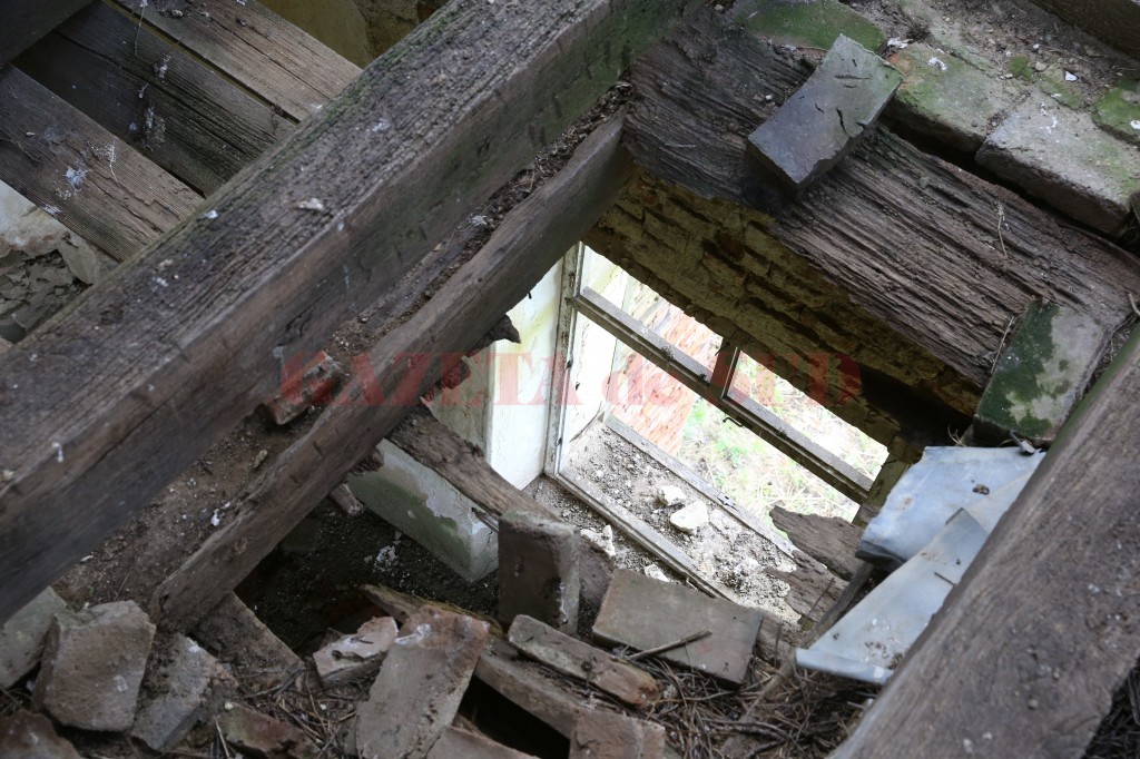 Imaginea degradării este dezolantă. Geamurile au căzut din rame, locul lor fiind luat de pânzele păianjenilor. În pod, lemnele au cedat, tabla a fost smulsă, așa că razele soarelui pătrund nestingherite prin găuri.