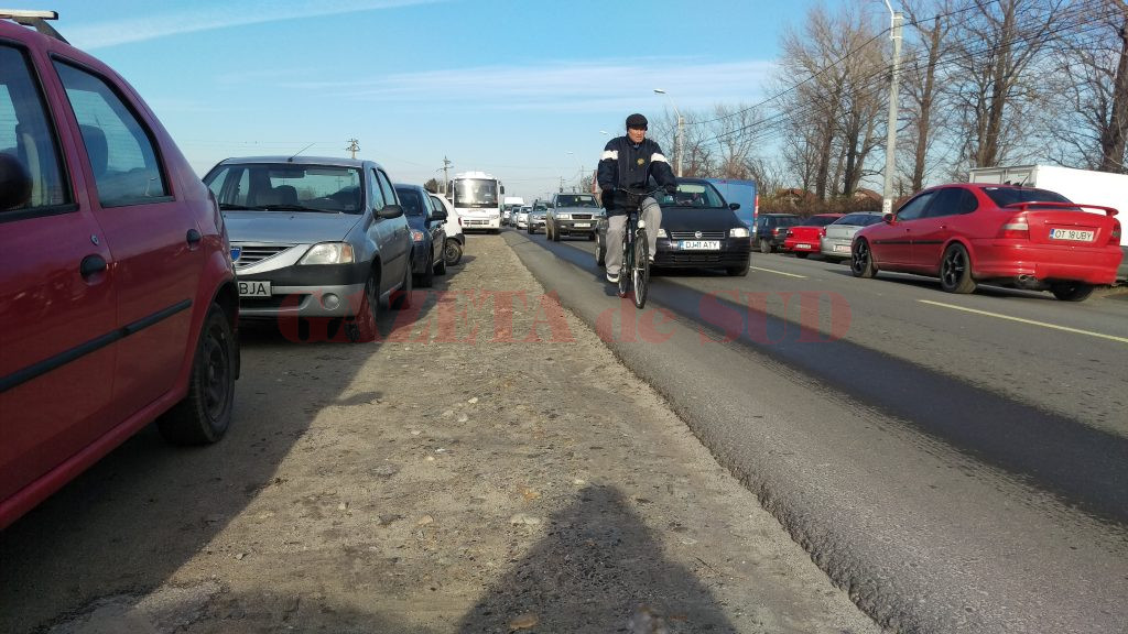 Pentru șoferii care trebuie să ajungă lunea pe DN 55 Craiova – Bechet, drumul până la ieșirea din Bănie reprezintă un adevărat calvar. În fiecare dimineață de luni, spre Făcăi se circulă bară la bară, cozile de mașini întinzându-se pe o distanță de câțiva kilometri. Dacă drumul spre Craiova este mai liber, sensul de mers spre ieșirea din oraș se blochează pentru circa patru-cinci ore, din cauza celor care vin în Târgul de la Făcăi și parchează autoturismele în zona unității militare, în afara părții carosabile. Și nu doar pe strada Prelungirea Bechetului este problema, ci și pe drumurile care fac legătura cu aceasta. Ieri-dimineață, sute de mașini stăteau la coadă pe bulevardul Nicolae Romanescu, pe sensul de mers către ieșirea din Craiova, pe strada Râului (tronsonul de după intersecția cu Popoveni) și pe Aleea 2 Bechet. Sensul giratoriu de la intersecția străzii Râului cu bulevardul Romanescu era supraaglomerat, iar coada de mașini ținea până după calea ferată de la Făcăi. „Așa se întâmplă în fiecare zi de luni, traficul este infernal. Ar trebui să facă ceva poliția, să nu se mai creeze aglomerația asta. Am făcut mai bine de o jumătate de oră de la Parcul «Romanescu» și până la Făcăi“, s-a plâns un șofer.