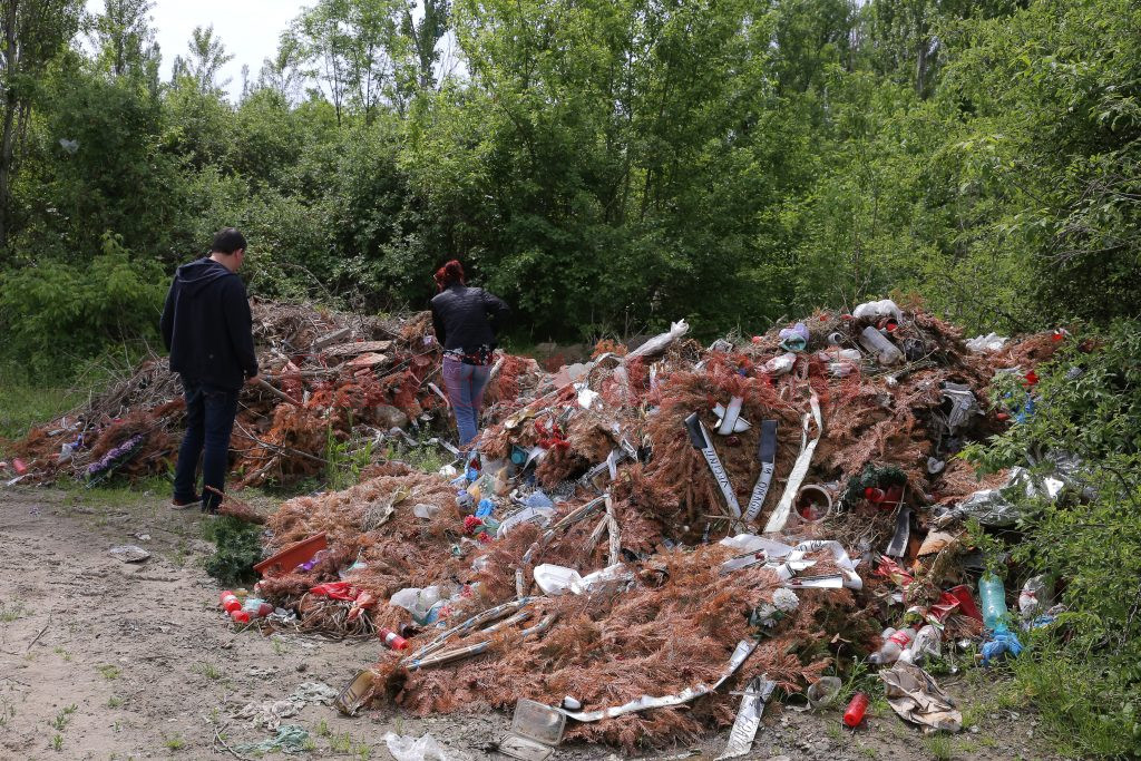 - Pe spațiul aparținând RAADPFL Craiova exista, joi, un munte de coroane și resturi din cimitire (Foto: Lucian Anghel)