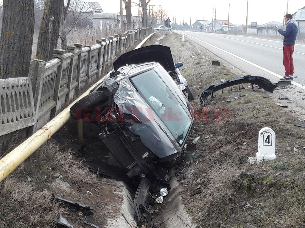 Două autoturisme au fost implicate, în urmă cu puţin timp, într-un accident care a avut loc, pe DN 6 Craiova – Caracal, pe raza comunei doljene Coşoveni. Din primele cercetări a rezultat faptul că unul dintre şoferi, un bărbat de 38 de ani din Craiova, nu s-ar fi asigurat la schimbarea direcţiei de mers, moment în care a intrat în coliziune cu celălalt autoturism care circula regulamentar şi cu ţeavă de gaze. În urma impactului, ambele maşini a ajuns în şanţ, chiar în dreptul cimitirului din comuna Coşoveni.