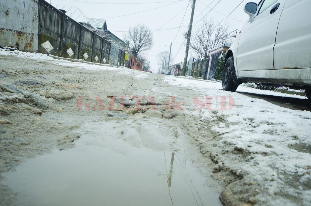 Într-un final, echipele Regiei au ajuns pe Aleea VIII Teilor, au refăcut pavimentul, dar în urma lor strada s-a prăbușit. Astfel, pe mijlocul străzii s-au creat câteva cratere, în care băltește apa până la gleznă, iar autovehiculele intră cu roțile până la jumătate. „V-am scris în toamna anului trecut despre Aleea 8 Teilor că nu se refăcuse strada după lucrările de extindere a canalizării și în urma articolului din Gazeta de Sud, la două săptămâni s-a remediat situația. Acum, la nici o lună după ce a fost reparată, s-a prăbușit efectiv, creând cratere de până la doi metri lungime. Am făcut sesizare la primărie de două luni și nimic, nu a venit nimeni să se ocupe de stradă. În partea de jos a străzii, pe mijlocul ei, s-au creat cinci, șase cratere, făcând circulația aproape imposibilă“, spune Ionuț Naidin.