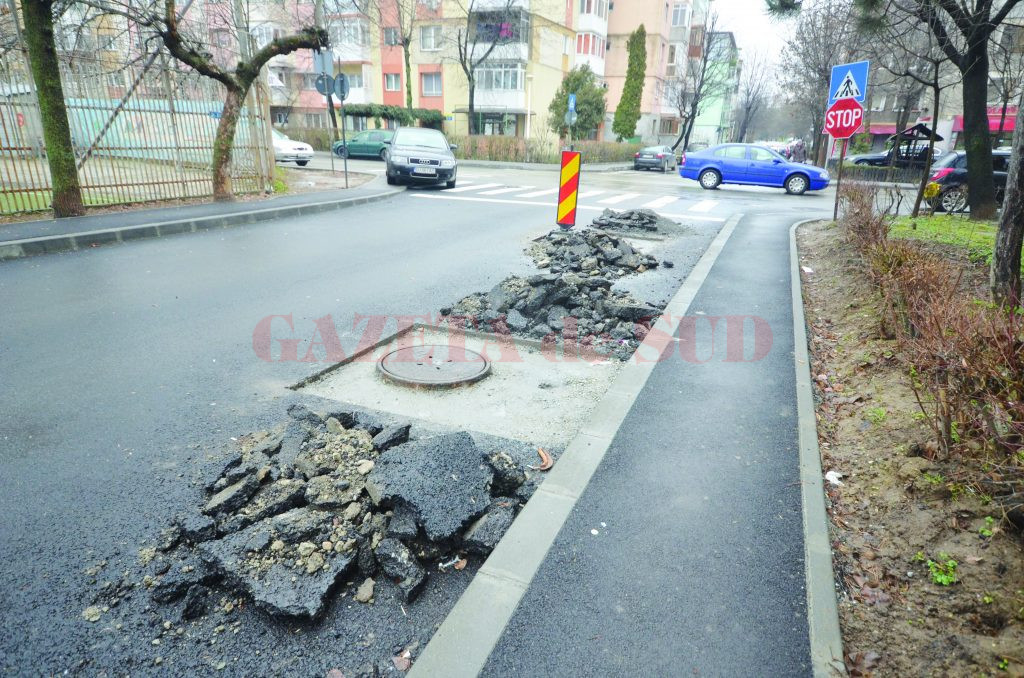 Un cititor GdS ne-a semnalat zilele trecute situația unei străzi din cartierul craiovean Brazda lui Novac, General Constantin Argetoianu, unde s-a intervenit pentru ridicarea la nivel a gurilor de canalizare. Cel puțin aceasta a fost intenția angajaților SC Delta ACM, firma care se ocupă de repararea stăzilor, aleilor, trotuarelor și parcărilor din oraș în baza unui acord-cadru care expiră în acest an. Constructorii s-au repezit la începutul lunii să spargă asfaltul în jurul gurilor de canal, dar nu s-au mai grăbit și cu reparațiile, iar strada respectivă s-a transformat într-una plină de „capcane“ pentru șoferi. „De două săptămâni ne rupem mașinile în aceste guri de canal de pe strada Constantin Argetoianu. Unele s-au și lăsat și oricând te poți trezi cu roata mașinii în ele. Asta e nepăsare!“, ne-a sesizat Cosmin, din Craiova.