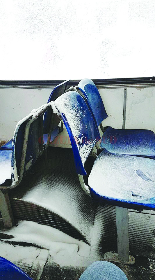 Un tânăr care a circulat ieri cu un autobuz al SC RAT Craiova SRL, pe traseul 2b, a publicat o fotografie în care se vede cum în interiorul mijlocului de transport s-a aşternut zăpadă pe patru dintre scaunele acestuia şi pe un segment din podea. Călătorul susţine că în autobuz ningea pe lângă turelă. „Nu era geamul deschis şi nu a fost deschis înainte. Se vedea cum ninge în autobuz, pe lângă turelă, cred că nu se închidea bine. Oricum, intra zăpadă şi pe lângă uşi“, a spus tânărul care a făcut publică fotografia.
