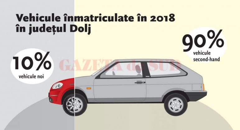 Potrivit datelor de la Serviciul Regim Permise și Înmatriculare a Vehiculelor Dolj, dintre mașinile înmatriculate pentru prima dată anul acesta, doar aproximativ 10% au fost mașini noi, iar circa 90% au fost vehicule second-hand. Dacă le adăugăm și pe cele 8.500 de vehicule care au fost la reînmatriculare ca urmare a schimbării proprietarului constatăm că nici acestea nu au cum să fie vehicule noi, din moment ce au mai avut și alți proprietari, ceea ce înseamnă că imaginea de ansamblu a înmatriculărilor pe județ arată o incidență mare a mașinilor uzate.