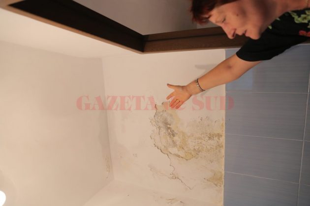 O craioveancă a ajuns să-și abandoneze locuința din cauza vecinilor care i-au distrus apartamentul, dar și a nepăsării celor de la asociația de proprietari. Femeia susține că în locuința situată în blocul 12 din cartierul craiovean Valea Roșie sunt permanent infiltrații ori de la conducta comună, ori de la cea a vecinilor de deasupra, din care cauză pereții de la bucătărie și baie sunt plini de mucegai și igrasie, iar aerul este irespirabil în interior. În ciuda disperării locatarei Adela Crețu, nici asociația, nici vecinii nu s-au arătat dispuși să tranșeze problema și să depisteze de unde provin infiltrațiile. Coșmarul acesteia a început în urmă cu doi ani, când și-a achiziționat un apartament confort redus și a început să-l renoveze. „După ce am cumpărat apartamentul, am început lucrările de renovare. Am schimbat tot, am schimbat la bucătărie, la baie, inclusiv conductele de apă. Am băgat bani de am rămas îndatorată și apoi m-am trezit cu casa distrusă, pentru că îmi curge apa pe pereți, pe tavan. Vine de la vecini, de la conductele comune, nimeni nu știe să spună! Am adus instalatori și degeaba! Problema mare este însă cu cei de la asociație. I-am chemat să constate și să verificăm de unde provin infiltrațiile și abia au venit. Ei îmi spun că tot eu sunt vinovată. Eu sunt nebună să mă inund singură, să-mi distrug casa?! Acum, dacă merg la asociație, atât administratoarea, cât și casiera mă iau la înjurături. Președintele la fel, îmi spune că nu discută cu mine. Casa mea este făcută praf, stau și plâng. Am ajuns să plec de acasă, să fac naveta, că nu pot locui în acest apartament, și cei de la asociație îmi dau cu ușa în nas!“, spune Adela Crețu.