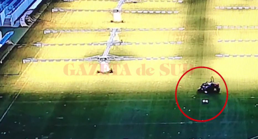 Evenimentul s-a produs pe 13 octombrie, când minorul respectiv a înşelat vigilenţa agenţilor firmei Protect NPG Paza SRL, contractată de primărie pentru a asigura paza nonstop a stadionului de 55 de milioane de euro din Craiova, şi a intrat pe gazon. Copilul teribilist s-a plimbat prin tribune, a coborât la marginea terenului, a urcat în utilajul folosit pentru tunderea gazonului, cu care s-a distrat apoi nestingherit, după cum s-a observat ulterior în imaginile surprinse de camerele de luat vederi şi publicate de ziaruldecraiova.ro. Fără să fie deranjat nici măcar de unul din cei patru agenţi de pază care trebuie să asigure permanent supravegherea stadionului, minorul şi-a permis chiar să facă mai multe curse cu utilajul respectiv pe gazon, iar după ce a părut că s-a plictisit de atâtea drifturi pe lângă lămpile de fotosinteză aflate în funcţiune, a plecat.