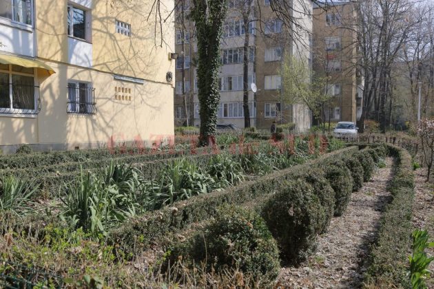 Un alt loc, o altă grădină care atrage atenţia. În apropierea Pieţei Centrale, în faţa blocului F12 se află un spaţiu care pare mai degrabă „rupt“ dintr-o grădină botanică şi care impresionează prin mărimea lui. După estimarea unui amator, se întinde pe mai bine de 100 de metri pătraţi. Ca şi în cazul lui Daniel Ciucă, grădina este îngrijită tot de către locatarii de la parter, care fac sacrificii mari, inclusiv financiare, pentru a o întreţine. O fac însă din pasiune pentru frumos. „Vrând-nevrând, suntem obligaţi să facem curat. Locuim aici de 15 ani, iar grădina este înfiinţată de către cei de la care am cumpărat apartamentul. În ultimii doi ani s-a încălzit clima. Iarna este mult mai scurtă şi mai călduroasă şi au apărut omizile de buxus, iar primăvara şi vara noi cumpărăm substanţe pentru a le combate. Apelăm la cineva să vină să stropească şi investim cam 1.000 – 2.000 de lei pe an în întreţinerea grădinii. Din păcate, populaţia nu are cultul esteticului şi al curatului şi suntem singurii care ne ocupăm de ea. Fiecare este canalizat pe supravieţuirea sa. Cine mai investeşte în curăţenie, în frumos?“, a spus cu tristeţe în glas persoana care se ocupă de îngrijirea grădinii şi care a refuzat să îşi decline identitatea.